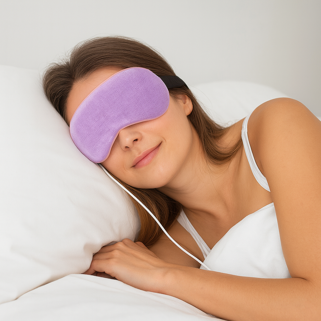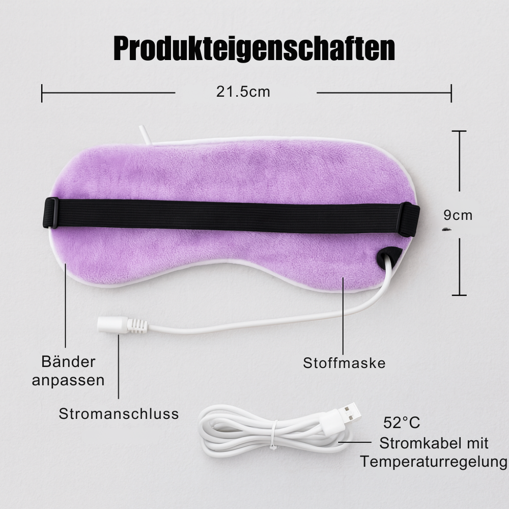 - Die Maske blockiert Licht vollständig und übt leichten Druck aus – ähnlich wie eine klassische Schlafmaske, aber mit dem Extra-Wärmeeffekt.